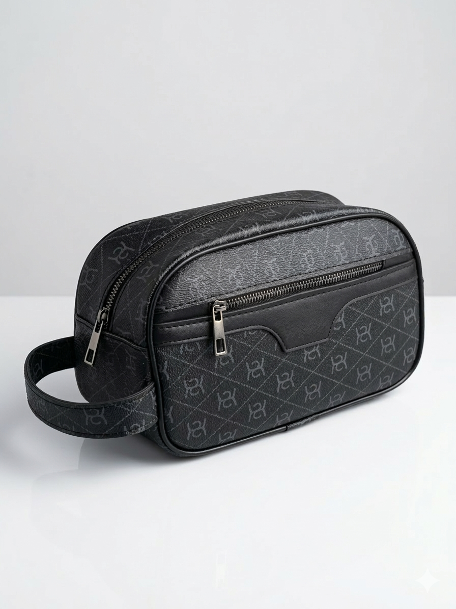 Hem günlük hayatta el çantası olarak kullanabileceğiniz, hem de seyahatlerinizde kişisel bakım (traş) malzemelerinizi düzenli tutacak şık ve fonksiyonel bir tasarım. Modern monogram deseni ve siyahın asaletiyle birleşen bu çanta, kalitesiyle uzun ömürlü kullanım sunar.
